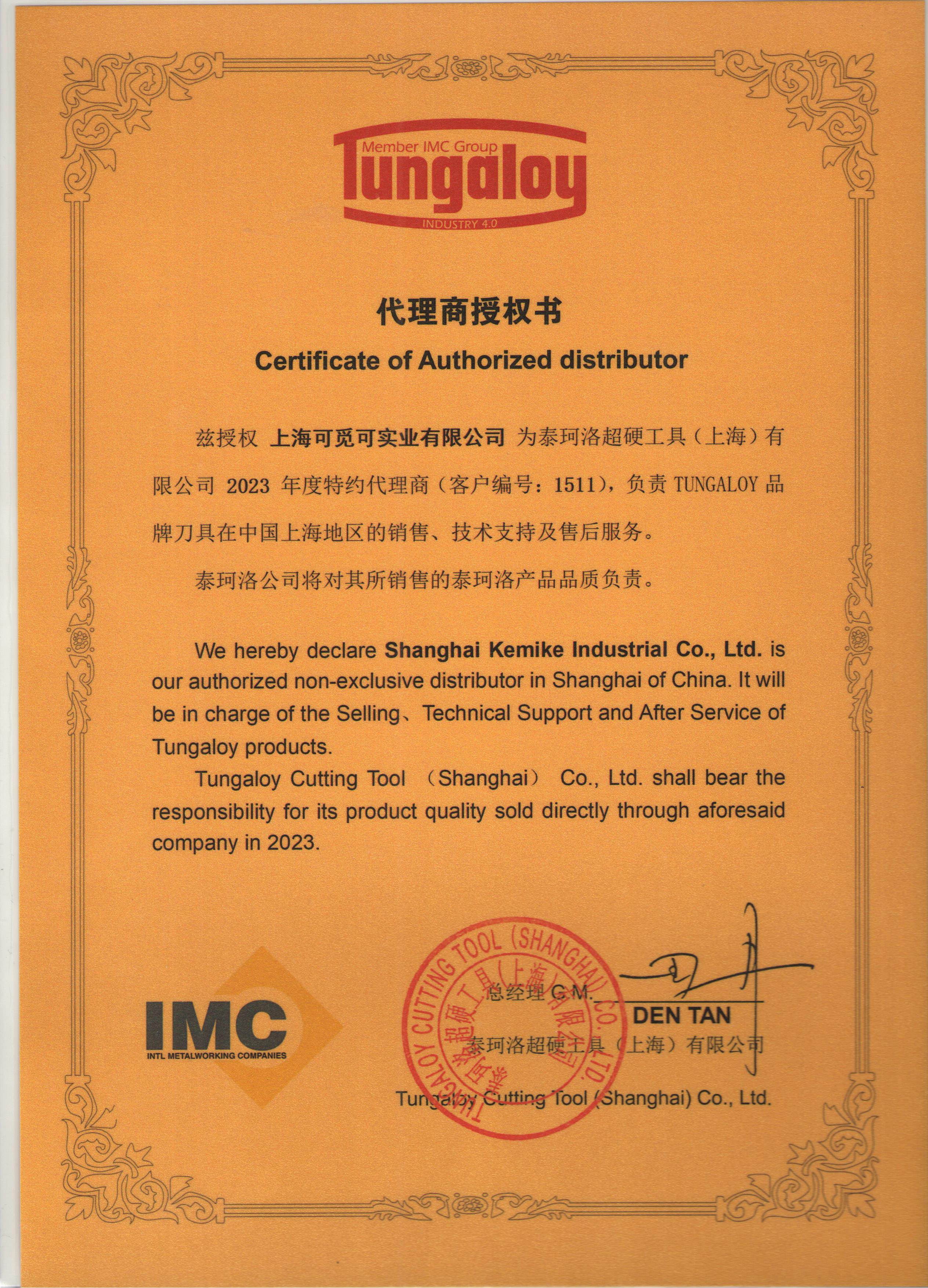 泰珂洛代理证书